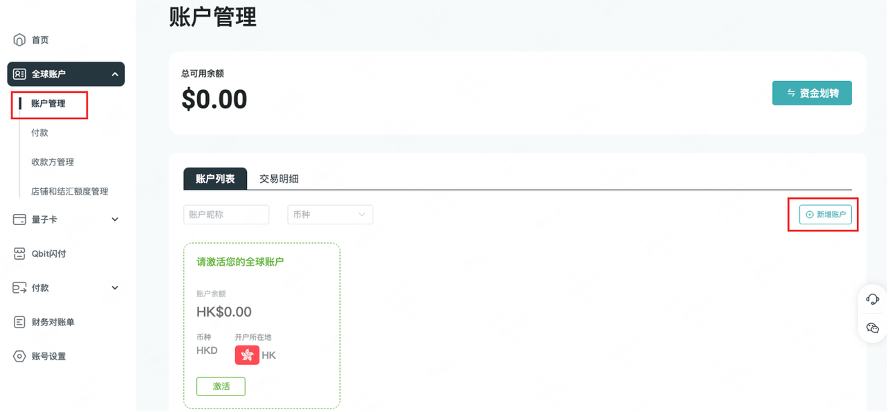 完成全球账户开户审核后,您的账户申请会自动提交至银行处理,请您耐心等待。若您还需要开通其他账户,可在【账户管理】页面点击【新增账户】。